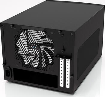 - Hinten: teilweise geschlossen, Lüftergitter links, PCI-Slots oben (2x horizontal)